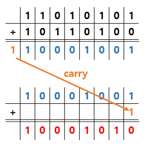 (아래에 8비트 합 연산시 wrap around를 하는 예제를 그려놨다. carry를 계속 더해주는 방식을 말한다.)