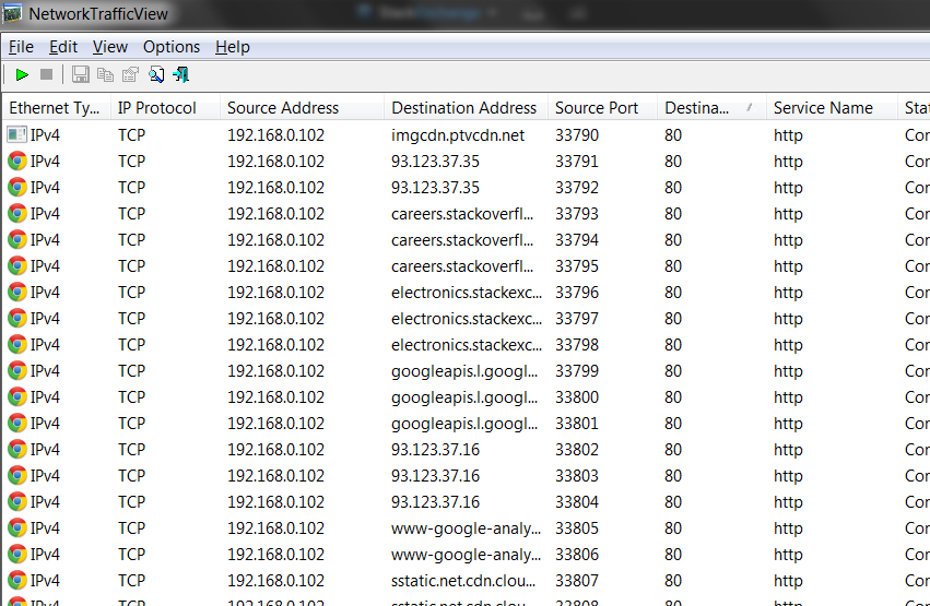 But when I try to listen the traffic I see that my browser doesn't use 80.